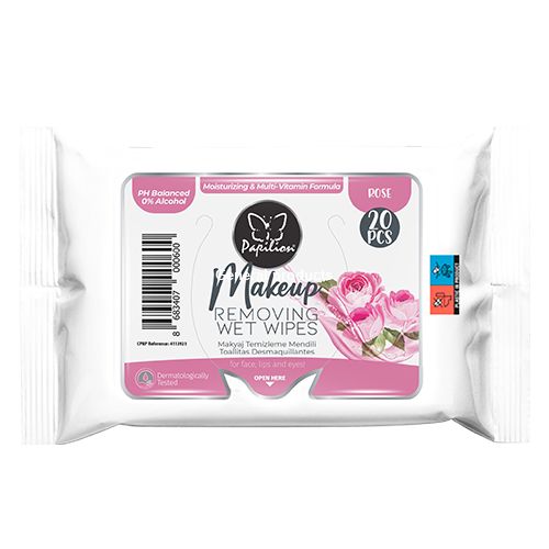 Papilion Make-Up Remover Rose Water 20 Sheet 1 Pkt