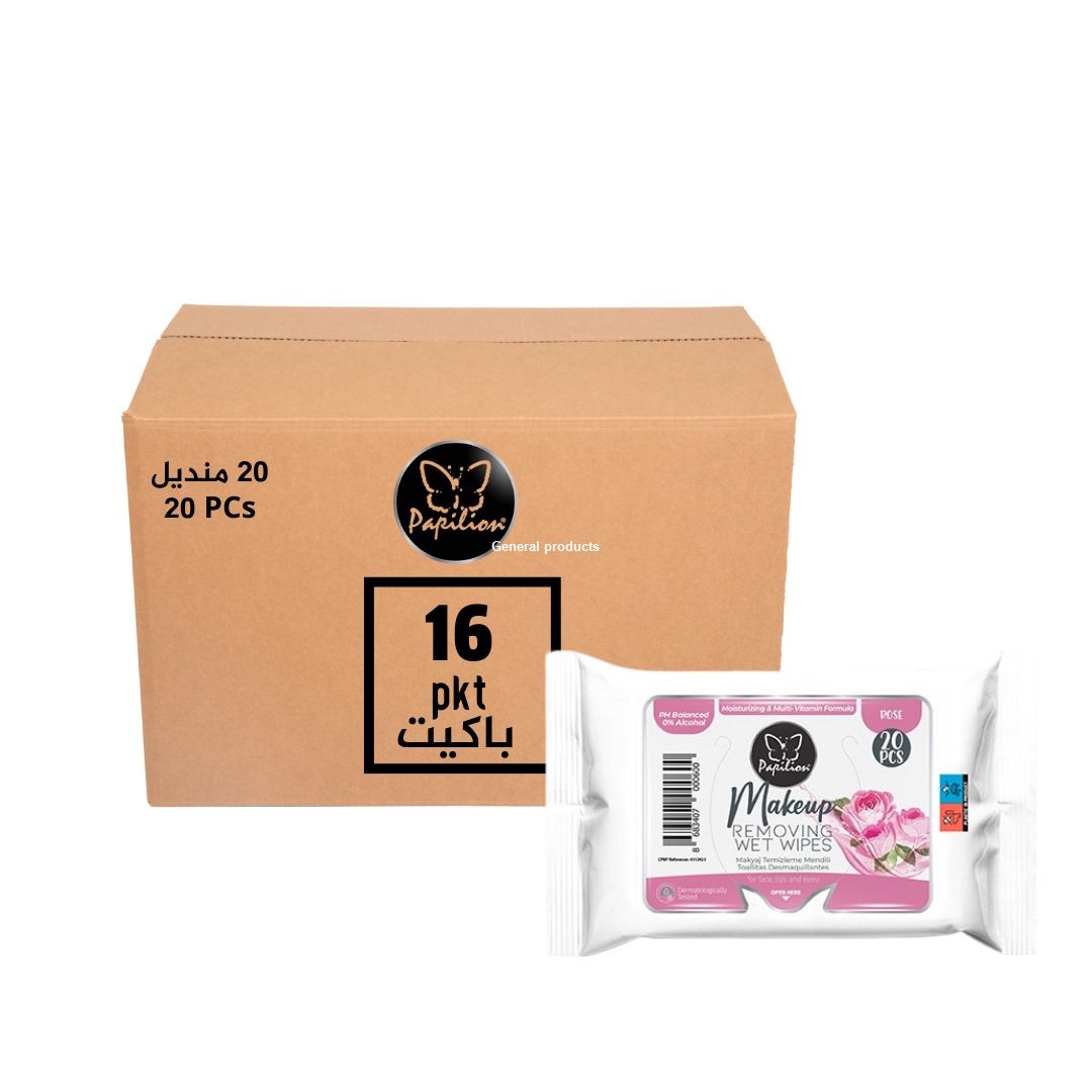 Papilion Make-Up Remover Rose Water 20 Sheet 16 Pkt 1 Box