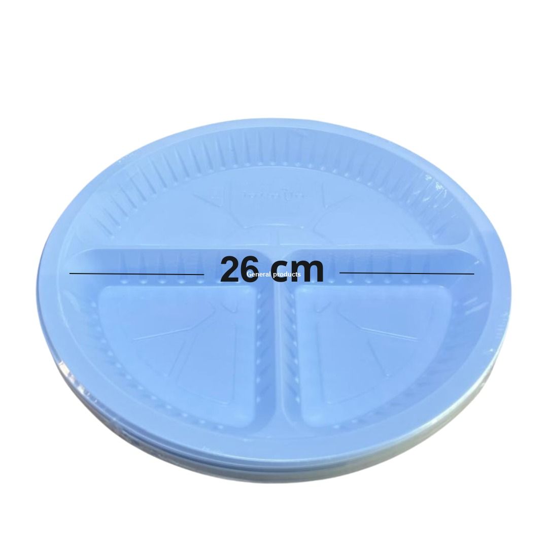 ALJ 3 Compartment Plastic Round Plate No 26 White 50 Pcs 1 Pkt