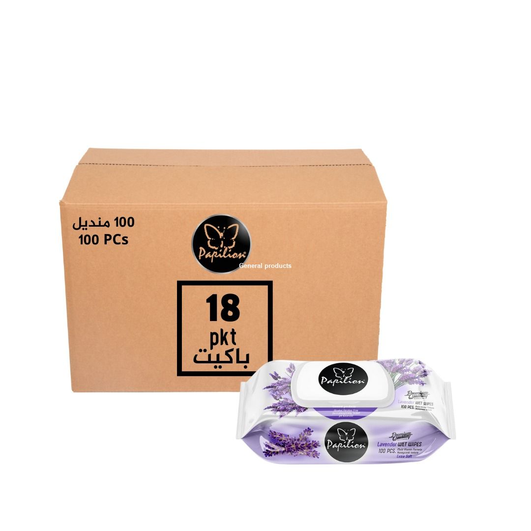 Papilion Wet Wipes 100 Sheets Lavender 18 Pkt 1 Ctn